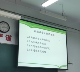 其次,王淑珍教授从四个方面介绍了内隐社会认知的理论,第一,内隐社会认知的内涵包括内隐社会知觉、判断及影响三个因素;第二,学界对于内隐社会认知存在“快速、直觉、关联、自动的自动加工系统”和“较慢、推理、慎思、控制的受控加工系统”。两者为竞争-合作关系,竞争的结果受占优一方决定。第三,内隐记忆与外显记忆是根据记忆过程中意识的参与程度划分的,其中内隐记忆是指个体在无法意识的情况下,过去经验对当前作业产生的无意识的影响,而外显记忆是指在意识的控制下,过去经验对当前作业产生的有意识影响,两种记忆之间也同样存在相互影响,相互促进的关系。第四,内隐社会认知存在着“快通路与慢通路”,受制于人的有限理性,我们在对事物的反应速度上也有快慢之分,快通路的认知对应着上文的“自动加工系统”,慢通路的认知对应的则是“受控加工系统”,两种认知通路同样对我们的日常生活有重大影响。