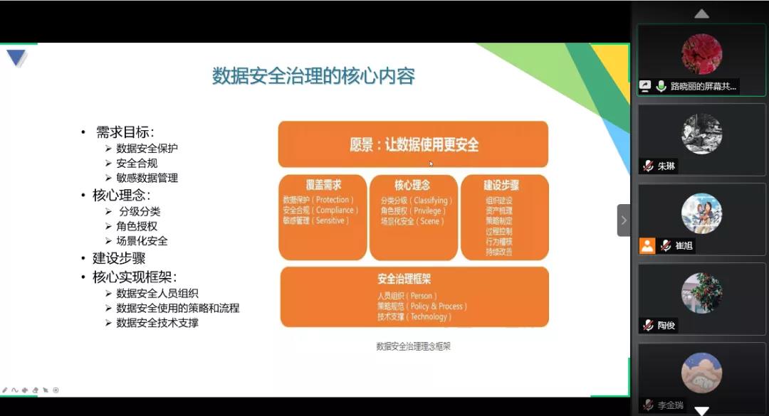 路晓丽老师在《数据安全治理:构建数据要素市场化的安全保障》的主题研究中指出,随着人类迈入数字化时代,数据带来的发展机遇与安全挑战并存,数据成为生产要素,寻求“发展”和“安全”的平衡,是激活“数据”要素的钥匙,而数据安全治理是主要的手段。数据安全治理是以“让数据使用更安全”为目的的安全体系构建的方法论。因此,研究提出了数据安全治理理念框架用来阐释数据安全治理的核心内容,并以数据安全能力成熟度作为衡量组织数据安全的基本抓手。最后,研究认为应从法制、标准以及技术三个维度来综合构建数据安全治理体系。