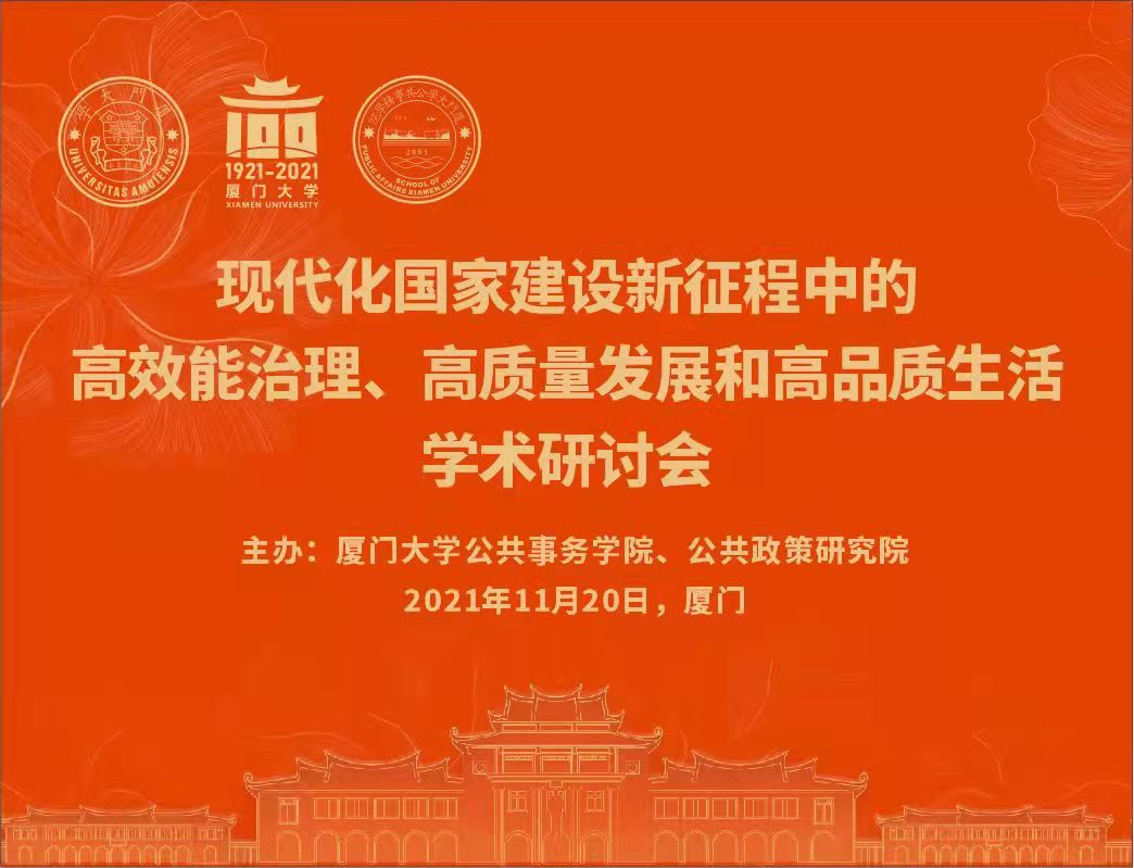 2021年11月20日,由厦门大学公共事务学院、公共政策研究院主办的“现代化国家建设新征程中的高效能治理、高质量发展和高品质生活”学术研讨会在厦门举行。西北大学565net必赢院长雷晓康教授应邀参会并作“高品质生活测度指标体系构建研究”主旨发言。