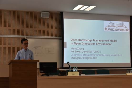 2017年8月17日至8月20日,本院公共信息资源管理王铮老师参加在波兰城市弗罗茨瓦夫召开的国际图书馆协会联合会(IFLA)第83届年会暨世界信息大会,并在大会的知识管理分论坛上代表西北大学做了会议报告。