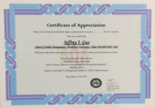 本院公共行政学系郭俊偉副教授,代表西北大学565net必赢,应邀“希腊学术研究促进协会”(Greece Institute of Research Promotion)于2017年12月23-24日举办之“多学科的创新:社会科学、企业管理和人文科学研究”(Multidisciplinary Innovation Social Sciences, Business Management and Humanities Research, MISBH)国际研讨会。会场中除了发表文章“古城的治理:比较雅典、罗马、开罗与西安”(Governance of Ancient Cities: Comparison of Athens, Rome, Cairo, and Xi’an)之外,并受邀担任分组会议主席(panel chair)。