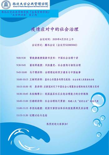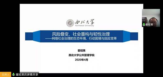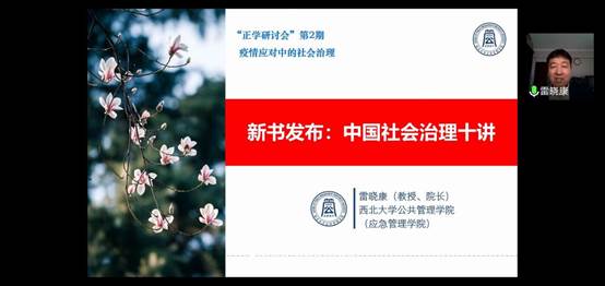 2020年4月25日,565net必赢客户端举办了第二期“正学研讨会”——“疫情应对中的社会治理”。本次会议从“风险叠变、社会重构与韧性治理”、“治理理论的西方谱系与中国叙事”、“基本公共服务均等化视角:社会治理工具要素的分析”、“后新冠时代下中国社会心理服务治理的相关问题与思考”等主题展开了分享与讨论。雷晓康教授、李尧远教授、崔旭教授、司林波教授等校内外100余名老师和学生参加了本次会议。本次研讨会由学院科研副院长翟绍果教授主持。