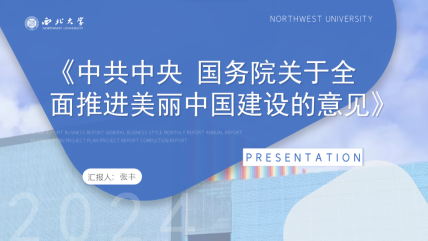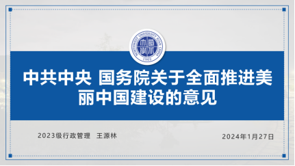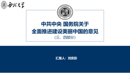 随后,张丰同学对《意见》第七节“打造美丽中国建设示范样板”及第八节“开展美丽中国建设全民行动”内容进行学习分享。分析了建设美丽中国先行区的战略靶向和战略要领;建设美丽城市的出发点与落脚点、目标导向、实践路径和未来发展方向;建设美丽乡村的经验来源于、指导思想与主要途径;以及开展创新示范的内涵,并总结了打造美丽中国示范样板“因地制宜、注入活力;层级联动、辐射带动;以点成线、以线成面”的主要特点。而从培育弘扬生态文化、践行绿色低碳生活方式、建立多元参与行动体系三个方面总结了“文化引领、多元参与,以绿色低碳生活方式共建美丽中国”的全民行动特点。