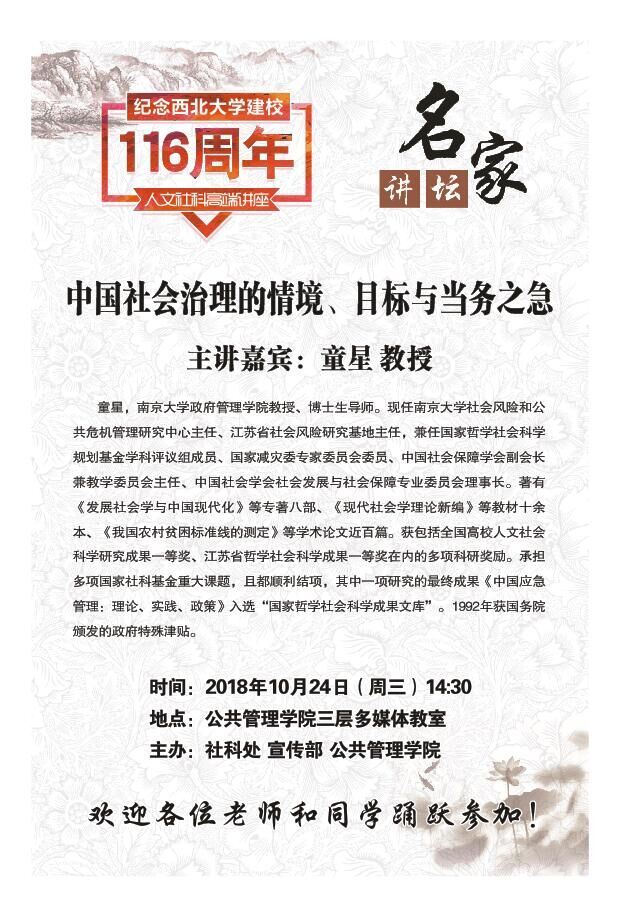西北大学名家讲坛暨公共管理学术前沿讲座(第105期)——中西文化传统与现代国家治理