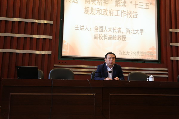 高岭教授在介绍全国人民代表大会基本情况、“两会”概况的基础上,从今年“两会”的新特点、会议的主要内容和精神、陕西代表团的主要工作、以及自己作为人大代表所提交的人大代表建议四个方面作了较为详细的报告。报告既有对会议主要内容和主要精神的传达,又有高岭教授作为人大代表对国家大政方针的理解、体会和感受。报告会不仅使学院师生对“两会”的主要内容和精神有了一个较为系统的了解,同时也为师生更好地把公共管理学科的研究、学习与国家的发展相结合给了很好的启发。