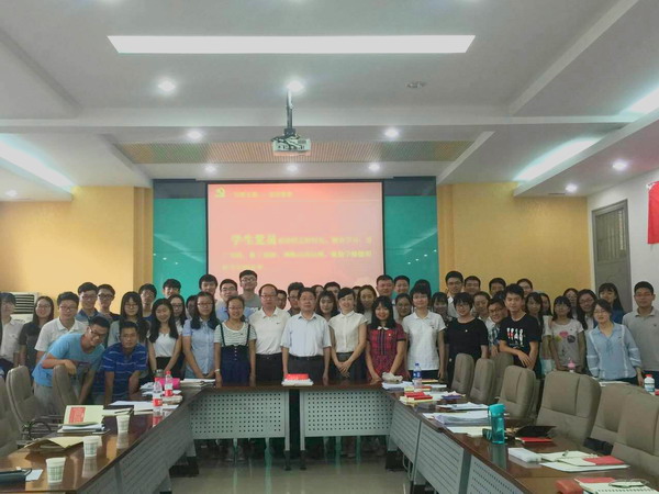 校党委副书记孙国华对党支部专题学习讨论会的组织、形式和内容,党员踊跃发言的真诚坦率给予了充分肯定。他结合学校“两学一做”学习教育的要求,对学生党员深入开展“两学一做”学习教育提出了三点意见:一是要在学习和生活中讲党性、讲规矩、守纪律,在党言党、在党忧党、在党为党;二是要将“四讲四有”落到实处,做勤学修德明辨笃实的表率,在学习、诚信、服务、纪律等方面体现党员先进性,用自己的言行为党旗增辉;三是要进一步端正入党动机,坚定理想信念,牢记入党誓词,不断提高党性修养。他希望广大学生党员在珍惜美好的学习时光、刻苦努力、学有所成,为实现伟大复兴的中国梦而努力奋斗。最后,孙国华副书记还参加了学生支部11名党员的政治生日活动,提出寄语并合影留念。