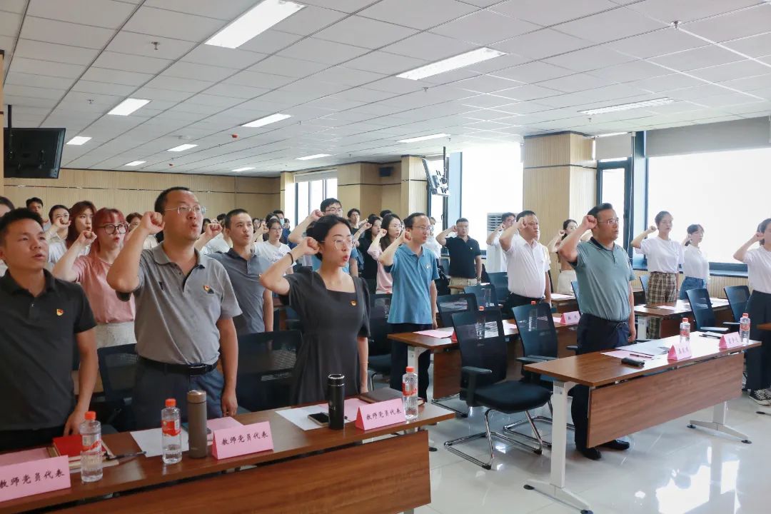 大会第三项,翟绍果同志宣读2022年上半年新发展预备党员名单。领誓人贾育东同志带领全体与会党员面向党旗高举右拳,庄严宣誓。新党员表达了对党的忠诚和为共产主义事业奋斗终身的决心和承诺,老党员重温入党誓词,不忘初心、牢记使命,坚定对党忠诚、矢志不渝的理想信念。