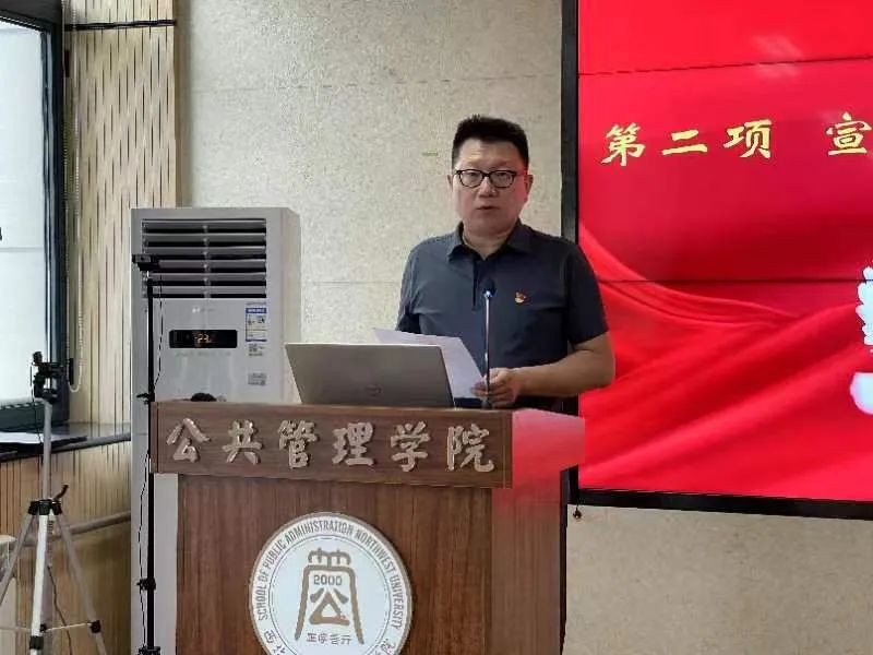 宣誓结束后,两位公管青年向与会同志分享自己的青春进步路,入党决心说。