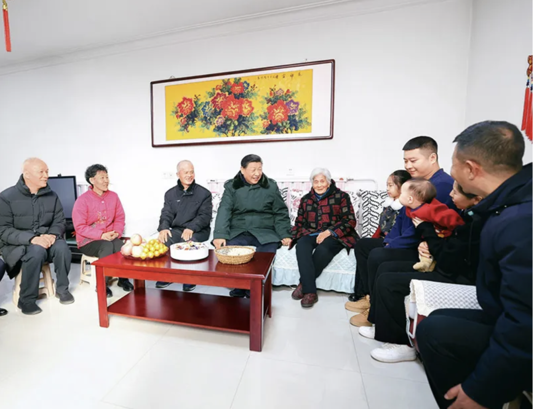 2024年2月1日至2日,中共中央总书记、国家主席、中央军委主席习近平来到天津,看望慰问基层干部群众。这是1日上午,习近平在西青区辛口镇第六埠村考察时,同村民杜洪刚一家人亲切拉家常。 新华社记者 鞠鹏/摄
