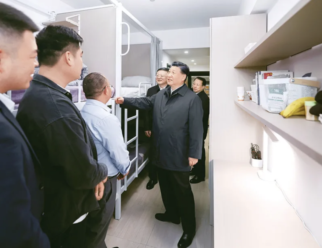 2023年11月28日至12月2日,中共中央总书记、国家主席、中央军委主席习近平在上海考察。这是11月29日下午,习近平在闵行区新时代城市建设者管理者之家考察时,在社区宿舍型出租房源租户的住房,了解在此居住的城市一线工作者的生活状况。 新华社记者 鞠鹏/摄