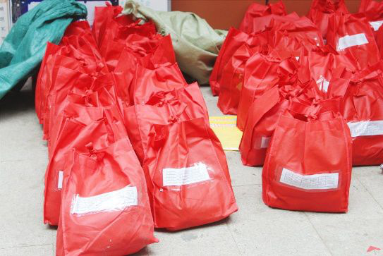 横幅是前几天做好的,其他的东西是昨天准备好的。今天七点半左右就到报到点集合来进行最后的布置。