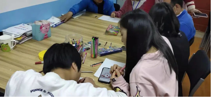 第二支朝阳志愿者小分队和慧灵的朋友们一起学习画画。准备好画纸与画笔后,朝阳志愿者与他们一同在手机上挑选了几张各自喜欢的绘画作品,并通过观看绘画教程,共同学习如何绘出一张好看的画作。