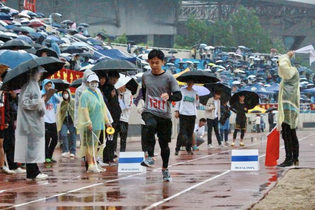 风雨中,运动员奋勇争先