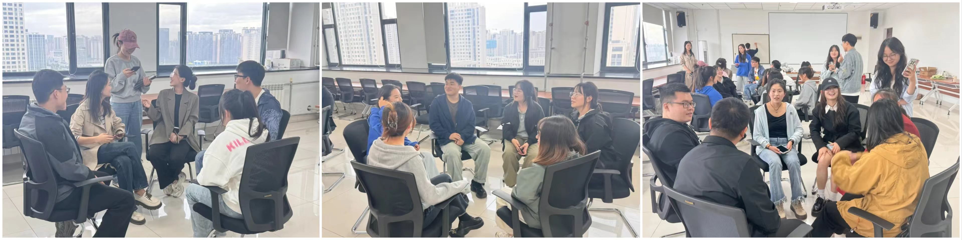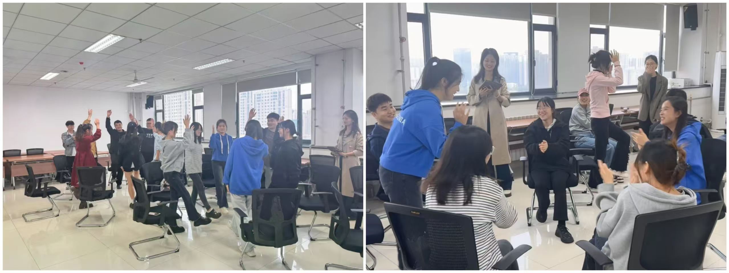 活动在大家的期待中如期展开,首先进行的游戏是“乘风破浪”,即通过接龙的方式复述前一位同学的基本信息,初步了解彼此,迈出相识的第一步。逐渐熟识后,接下来的“你在做什么”游戏进一步拉近了大家之间的距离。在本轮游戏中,同学们需要在做一个动作的同时口中说另一个动作,这样手口协调的活动有效地活跃了现场气氛,使同学们在进一步了解彼此的同时更加放松和自在。