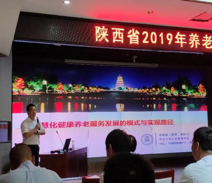 为加强陕西省养老人才培养,规范养老院管理,提升养老服务质量,陕西省民政厅于2019年8月27日至29日举办全省养老院院长培训班,特邀基地主任雷晓康教授对培训班授课。在培训班上,雷晓康教授以“智慧化健康养老服务发展的模式与实现路径”为主题,向与会养老院院长讲解智慧健康养老的内涵、服务模式、建设路径等内容,旨在助推陕西省养老服务机构服务质量的全面提升,推动养老服务机构转型升级。