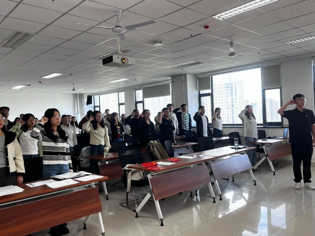 回顾入党誓词,重温革命初心。为了进一步强化支部党员的使命感、责任感和归属感,时刻提醒支部党员牢记自己的初心和使命,始终保持共产党员的先进性和纯洁性,支部组织委员程冠斌同志带领支部全体党员重温入党誓词。全体党员面向党旗举起右手,神情庄重,用铿锵有力的宣誓,表达了坚守初心、踔厉奋发、笃学不怠的坚定信念,以及为党的事业奋斗终身的决心和愿望。