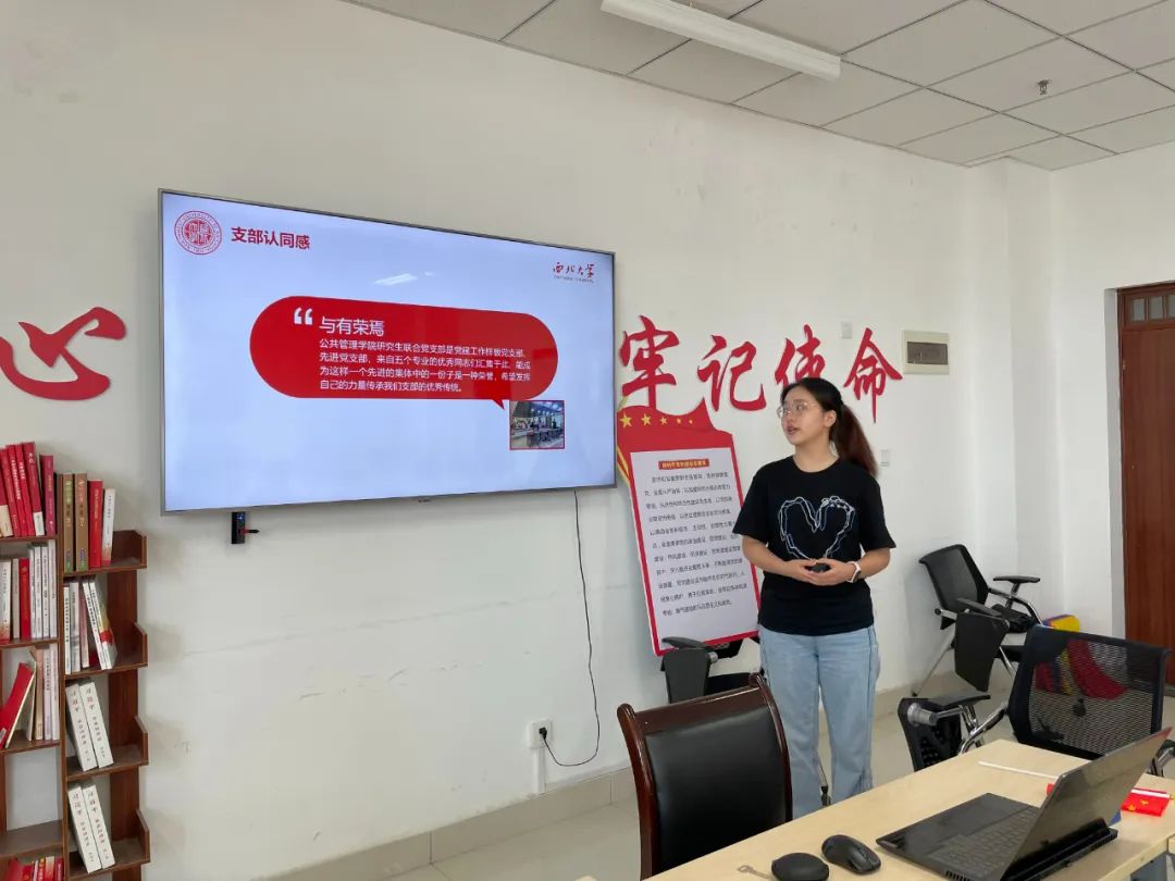 新学期新气象,研究生联合党支部换届选举大会于9月13日在党员活动室1515举行。此次党支部换届选举工作严格按照《中国共产党章程》和《中国共产党基层组织选举工作暂行条例》等规定开展,确保选举公平、公正、公开。本次大会采取等额选举和不记名投票的方式,两位候选人基于个人工作经历、竞职认知及党务工作规划等内容作个人陈述,经民主投票,2022级图书馆学专业的党员张珺敏同志当选为研究生联合党支部新一任支部书记,2022级应用心理学的党员崔祎萌同志当选为新一任宣传委员,2022级图书馆学的党员高攀同志当选为新一任组织委员。