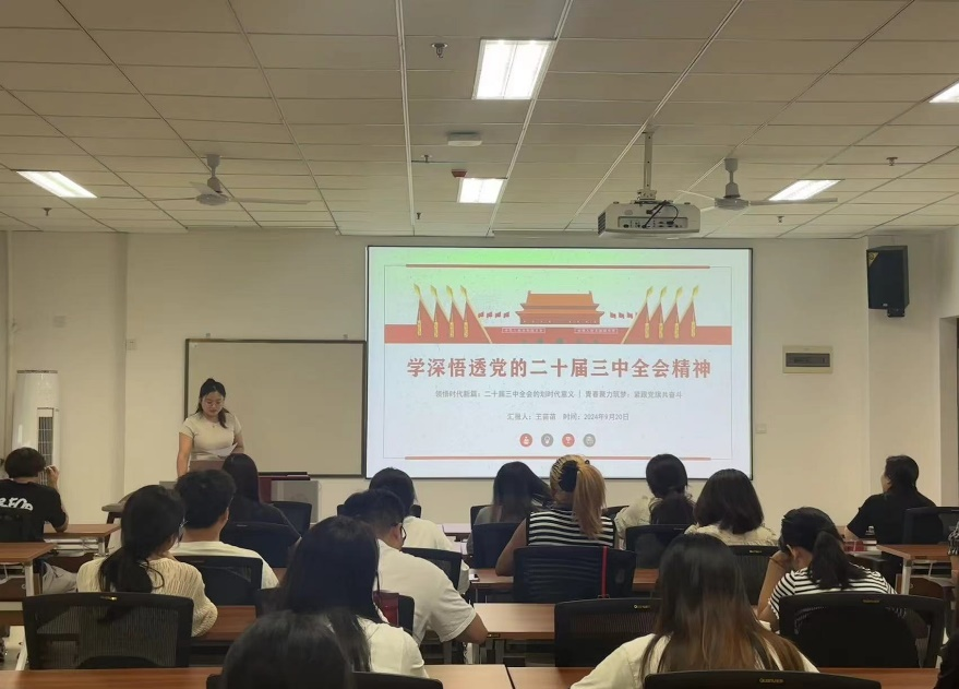 为深入推进新时代党的建设伟大工程,进一步促进学院入党积极分子培养,提高入党积极分子的思想觉悟,2024年9月20日14:30,我院在西学楼北1607举办“铸魂固本强党性 修身励志担使命”党员素质能力提升训练营之入党积极分子培训班,会议主要围绕学习贯彻“党的二十届三中全会精神”、领学“全国教育大会”两大核心展开。本次培训班由李文同志主持,我院各学生党支部49名入党积极分子参会。