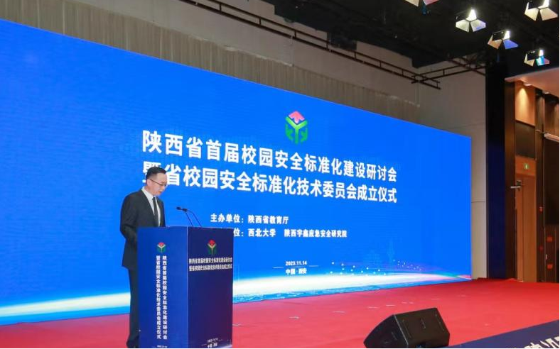 2023年11月14日,陕西省首届校园安全标准化建设研讨会暨省校园安全标准化技术委员会(简称“标委会”)成立仪式在陕西宾馆隆重举行。本次研讨会由陕西省教育厅主办,西北大学、陕西宇鑫应急安全研究院承办,以“贯彻落实党的二十大精神,以高水平的校园安全助推陕西教育高质量发展”为主题,与会专家学者围绕为高质量发展提供坚强的安全保障进行了深入的交流研讨。