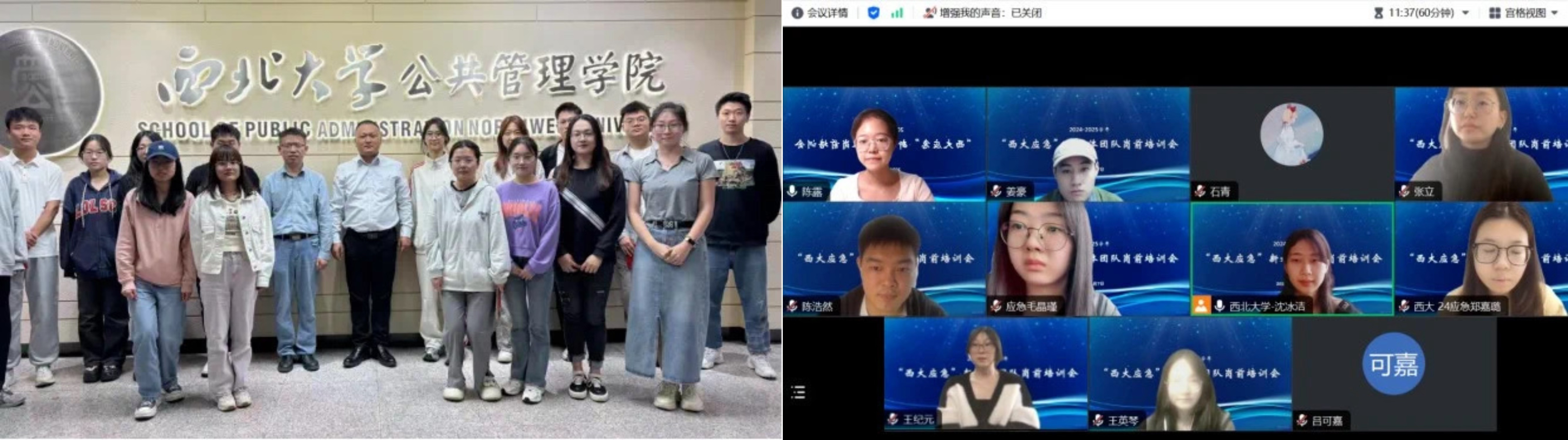 西北大学应急管理学院的“西大应急”新媒体团队是为应急管理专业硕士研究生提供的新媒体运营平台,在掌握新媒体技能的同时进一步加深对专业的理解,更好提升专业理论素养和实践本领。10月7日下午,“西大应急”新媒体团队举办线上岗前培训会,团队成员们的专业素养和履职能力得到了显著提升,为即将到来的工作做好了充分准备。10月11日,举行“西大应急”新媒体团队年度总结表彰暨换届会议,回顾了上年度的工作成绩,表彰了一批优秀同学,同时吸纳新一届团队成员,象征着传承与创新确保新老团队工作顺利交接。期待“西大应急”新媒体团队未来在提升团队成员采编与编辑能力的基础上,为学院宣传工作贡献更多智慧和力量,书写应急管理学院的新篇章。
