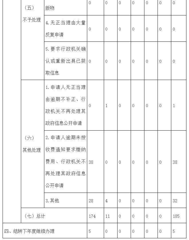 (二)依申请公开方面。全年共办结政府信息公开申请185件,同比增长26%。从申请主体看,公民申请占94%,法人或其他组织申请占6%;从申请形式看,网络申请占57%,邮寄申请占43%;从申请内容看,主要围绕事故灾害调查处理、事故灾害统计分析、应急管理行政执法、安全生产失信主体、安全评价等方面;从办理结果看,予以公开62件,部分公开1件,不予公开12件,无法提供29件,不予处理10件,其他处理71件(其中32件为办理过程中主办司局经电话沟通解决申请人相关诉求后,申请人提交撤销申请,提前终止办理程序) 。