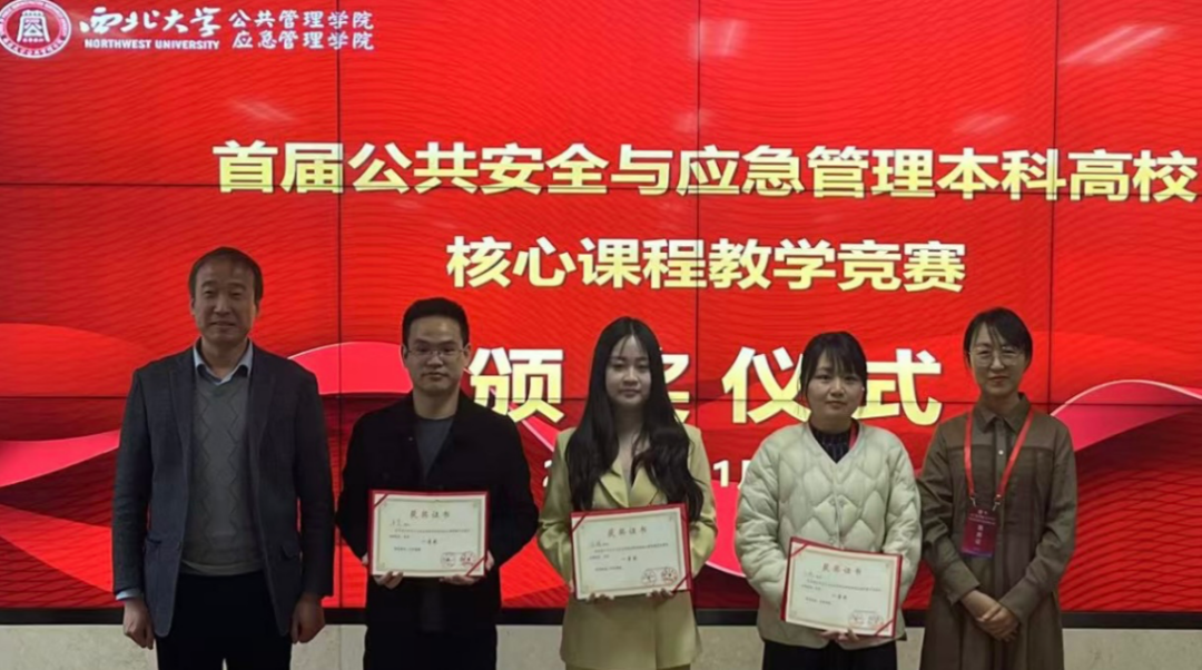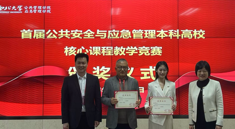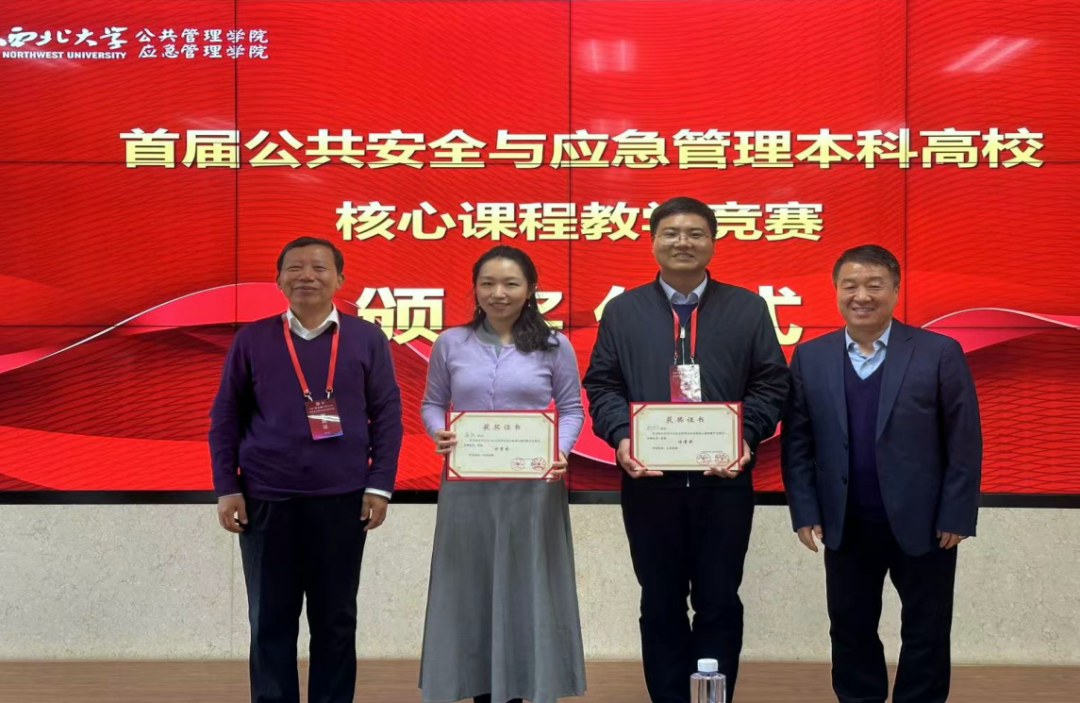 (夏保成、西北大学应急管理学院雷晓康院长为特等奖获得者颁奖)