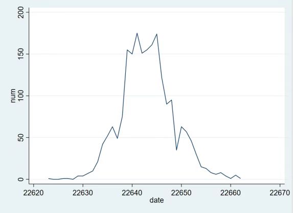 从2021年12月9日到2022年1月17日,西安确诊病例数变化趋势如图1所示。
