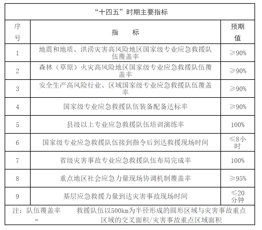 总体目标:到2025年,规模适度、布局科学、结构合理、专长突出的应急救援力量体系基本建成,实现专业应急救援力量各有所长,社会应急力量有效辅助,基层应急救援力量有效覆盖,为人民群众生命财产安全提供坚强保障。