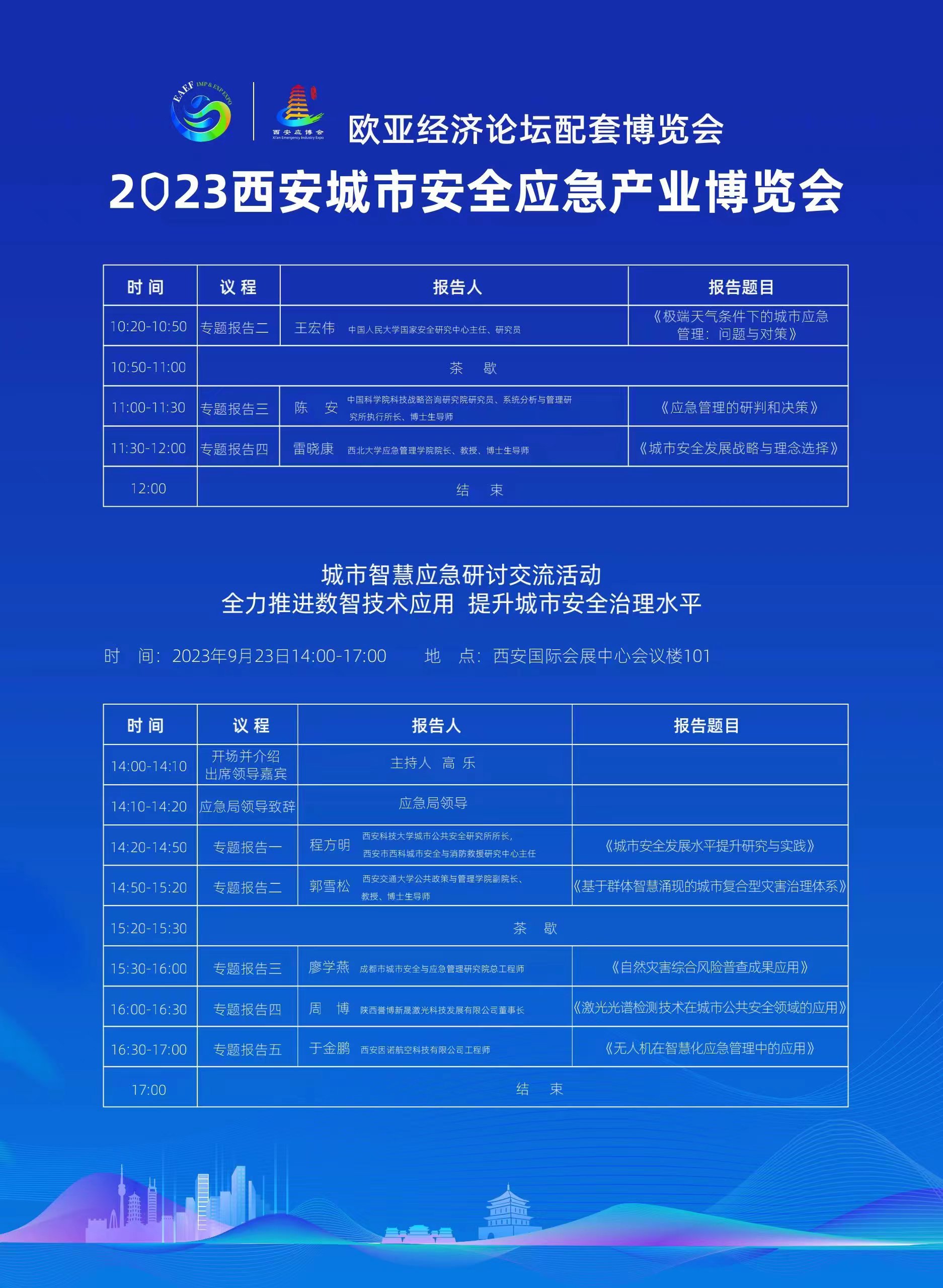 2023西安城市安全应急产业博览会(以下简称西安应博会)定于9月22日-25日在西安国际会展中心举办。作为欧亚经济论坛配套博览会,此次西安应博会由西安市应急管理委员会、西安市安全生产委员会、西安市防灾减灾救灾工作委员会联合主办,西安市应急管理局、西安市博览事务中心承办,西北大学应急管理学院协办。