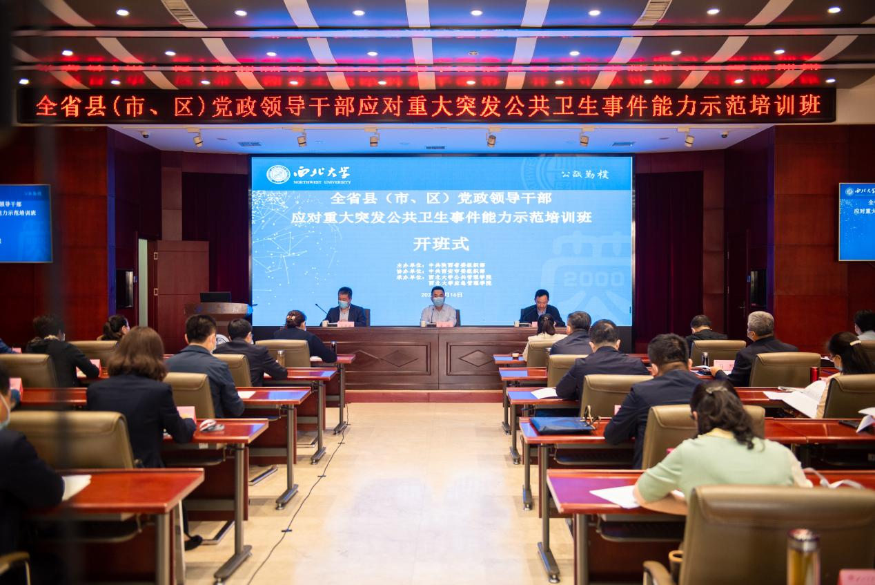 5月16日,全省县(市、区)党政领导干部应对重大突发公共卫生事件能力示范培训班在西北大学开班。开班式由中共西安市委组织部干部教育处处长熊伟主持,565net必赢客户端院长雷晓康致辞,中共陕西省委组织部干部教育处处长梁刚作动员讲话。本次培训班由省委组织部主办,西安市委组织部和西北大学565net必赢(应急管理学院)协办,全省县(市、区)选派人员参加。